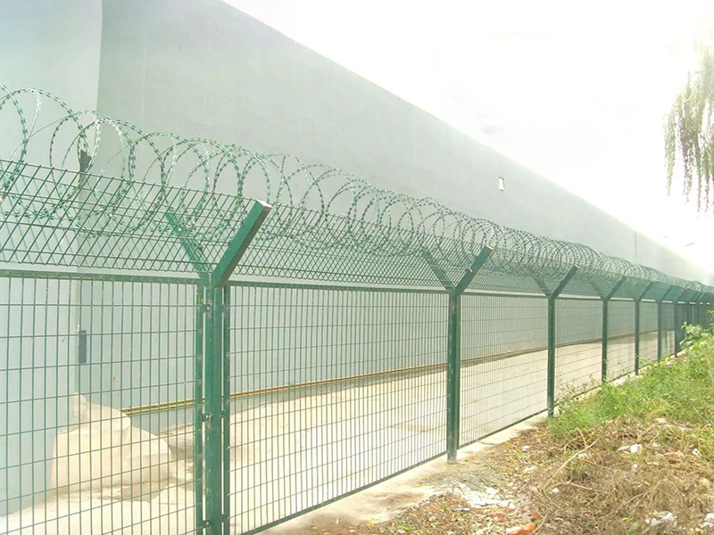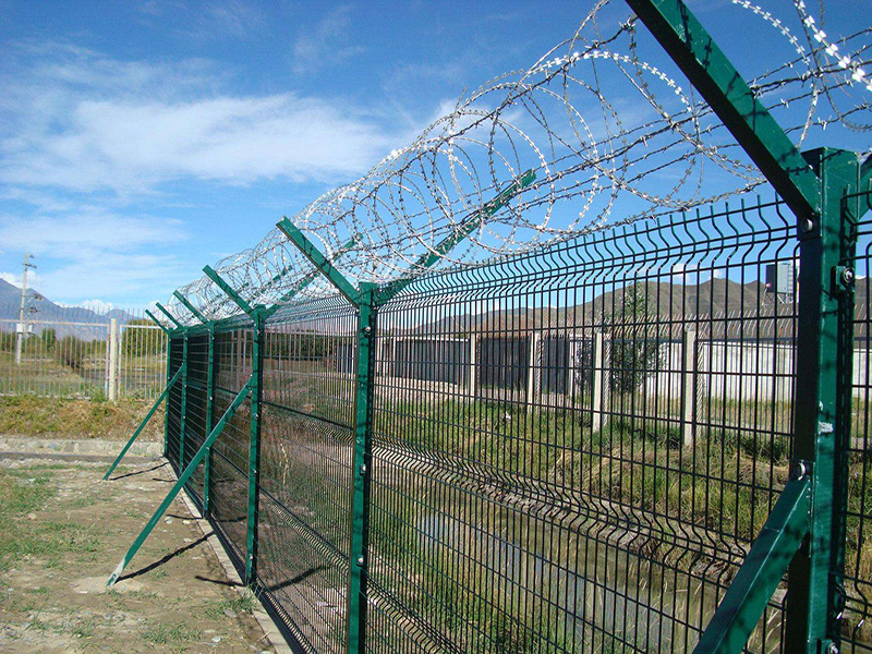 機場護欄網又稱作“Y型安全防御護網”,由Y型支架立拄,加強型焊接網,安全防盜連接件和熱鍍鋅刀片刺網組成,是強度和安全防御性級別很高的圍界護欄網產品。被廣泛應用在機場、軍事基地等高安全場所。機場護欄網的突出特點就是美觀實用、安全性高、防攀爬能力好,網體連接方式采用特制SBS緊扣件,有效防止人為的破壞性拆卸,橫向四道折彎加強筋,使網面強度顯著增加。