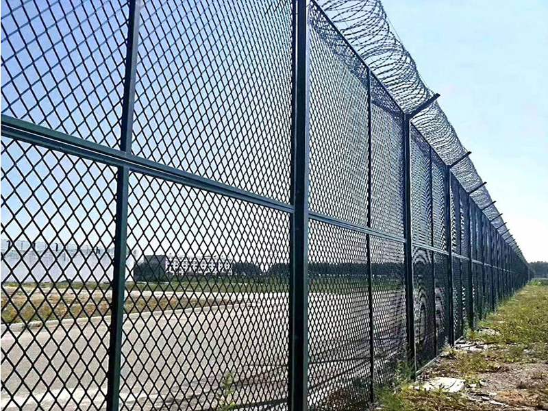 機場護欄網是一種采用低碳鋼絲焊接而成的網片 立柱 刺鐵絲(可選) 斜撐(可選)連接而成的護欄網產品。本產品美觀大方、防腐性好、易保養、防攀爬能力強。主要適用于機場周圍的隔離防護、美化及防翻越工程。本產品采用組裝式整體框架結構,具有堅固耐用、利于施工、安裝方便、快捷的特點。